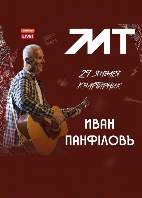 ✔ Живое выступление автора-исполнителя Ивана Панфилова ✔ Камерный формат квартирника ✔ Прозвучат известные песни «Бессмысленны слова», «Море воды», «Молодость», «Без тебя» ✔ Авторская программа с акустическим звучанием 📅 Когда: #29_января, 19:30 ⛳ Где: бар «МТ», ул. Муравьёва-Амурского, 3Б, Хабаровск 💳 Стоимость: 2000 ₽ 📞 Контакты: +7 (4212) 944-422 Билеты 👉 Афиша Хабаровска. Куда сходить, экскурсии