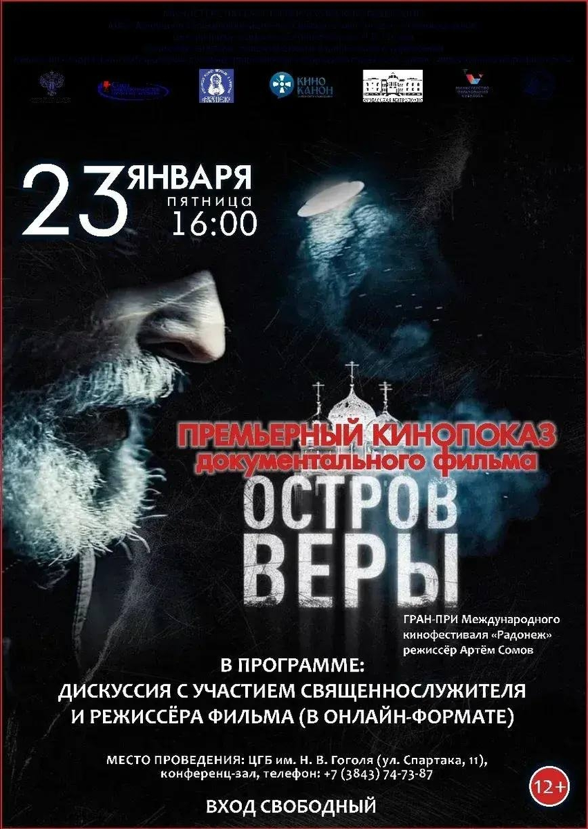 23 января 2026 года в Центральной городской библиотеке им Н.В. Гоголя г. Новокузнецка состоится премьерный показ документального фильма «Остров веры». После просмотра зрители приглашаются на дискуссию с участием священнослужителя и режиссера фильма в онлайн-формате. Начало мероприятия в 16:00. Вход свободный.
