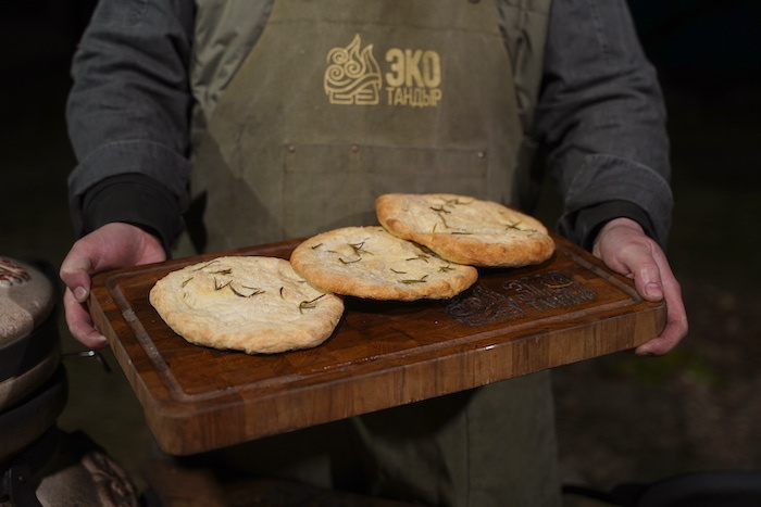Итальянская кухня Фокачча с розмарином – это традиционный итальянский хлеб, который отличается своим ароматом и хрустящей корочкой. Нежный хлеб с хрустящей золотистой корочкой, украшенный свежим розмарином, идеален для сопровождения множества блюд или просто как закуска с оливковым маслом. Для теста: Шаг1. Приготовить тесто. В глубокой миске смешать муку, сухие дрожжи, сахар и соль. Добавите теплую воду и оливковое масло, замесить тесто. Оставить тесто в теплом месте на 1 час, накрыв пленкой или полотенцем, чтобы тесто поднялось. Шаг2. Когда тесто подойдет, переложить его на смазанную маслом форму для запекания, распределить тесто руками на всю поверхность формы. Сделайте углубления в тесте пальцами. Распределить по поверхности нарезанные листья розмарина. Убрать тесто в тепло на 20 минут. Дать тесту подняться. Шаг3. Посыпать поверхность фокаччи морской солью и полить оливковым маслом. Поместить лепешки на полки трехуровневой решётки-гриль. Шаг4. Поставить в тандыр при начальной темпер