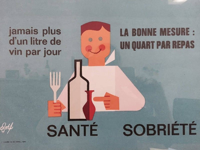 ». Плакат относится к кампании «Santé/Sobriété» (Здоровье/Трезвость), запущенной во Франции в начале 1950-х, когда среднее потребление вина превышало 140 литров на человека в год! 😱 Похоже, сейчас французам с их текущими 35 литрами в год на человека актуально уже проводить обратную кампанию, в целях поддержки собственных виноделов🙈
