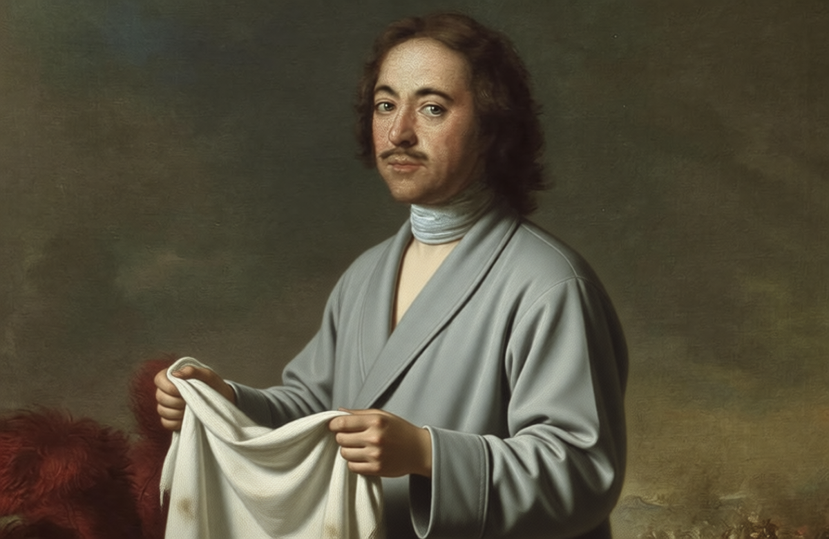 Агафья знала: стирка белья государя — не работа, а тайна. Каждое утро, едва солнце касалось Невы, она отправлялась в банную избу с корзиной, накрытой чистым полотном. Внутри лежали простыни с монограммой «П.А.» — Петра Алексеевича и Анны. Но в отличие от других слуг, она не видела царя. Его следы оставались в деталях: вмятина на подушке похожая на отпечаток кулака, волосяной пушок на шёлковой наволочке, крошечные капли воска от свечей, расплавленного в пылу ночи.