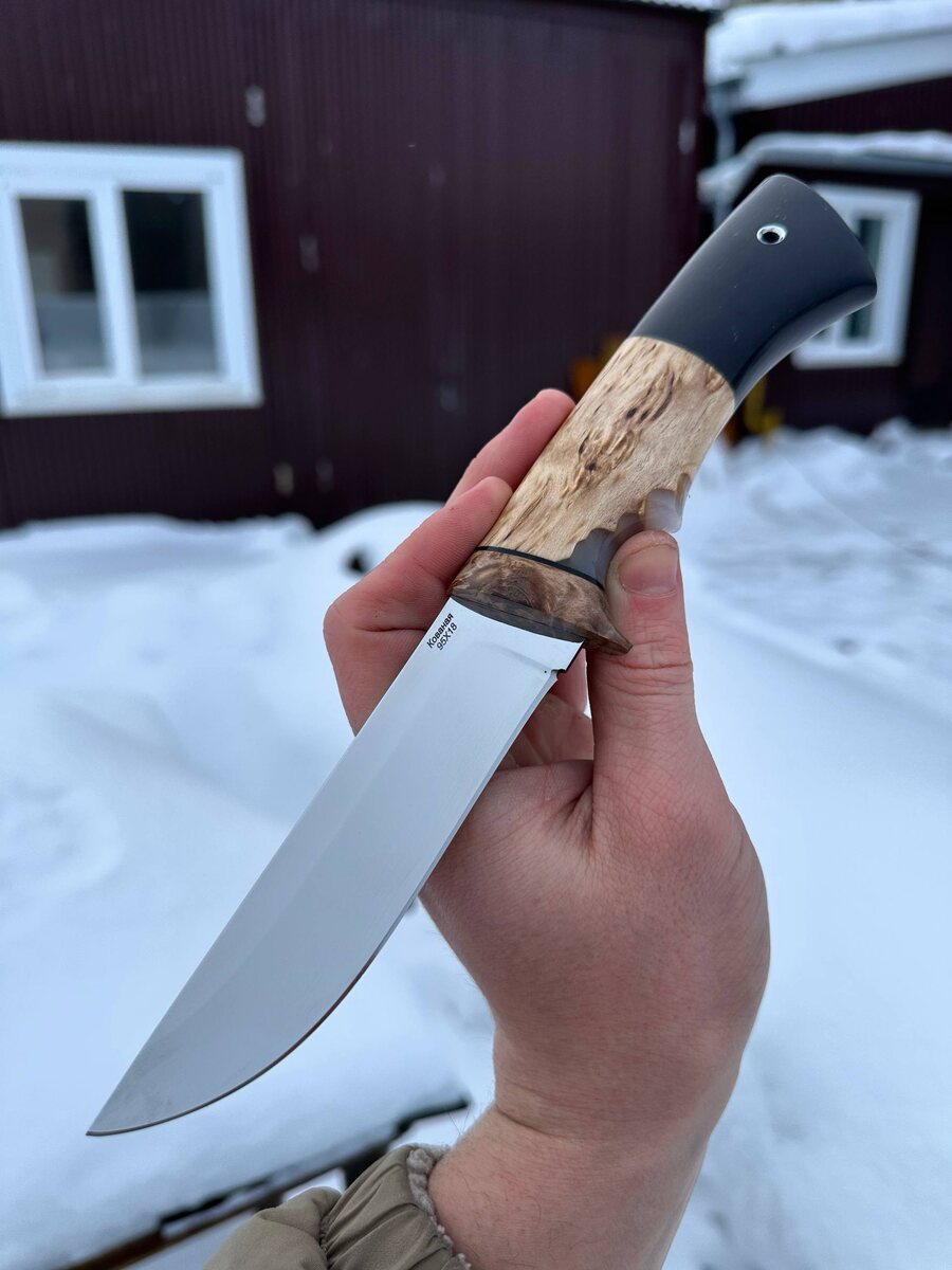 ! Почему “Беркут” — отличный выбор для настоящих ценителей ? 🔪 Клинок из премиальной стали Х12МФ — закалка до 61-62 HRC, превосходная стойкость к износу и коррозии. ⚡ Полные спуски от обуха — обеспечивают *агрессивный рез легко справляется даже с самой плотной дичью. 🌳 Рукоять из гибрида акрила белого и стабилизированной карельской березы янтарь — уникальный рисунок, прочность, гарда с мозаичным пином для надежного хвата. 🛡 В комплекте — ножны из натуральной кожи — можно заказать формованные ножны (+8000₽) для идеальной посадки. 💥 Цена: ~11.450₽~ → 8.587 ₽ по акции! --- 📲 Пишите для заказа: — Telegram: @Nazarklinokbot — WhatsApp/Viber: +79101343831 #ножи #ручнаяработа #охота #подарокмужчине #КузницаНазарова