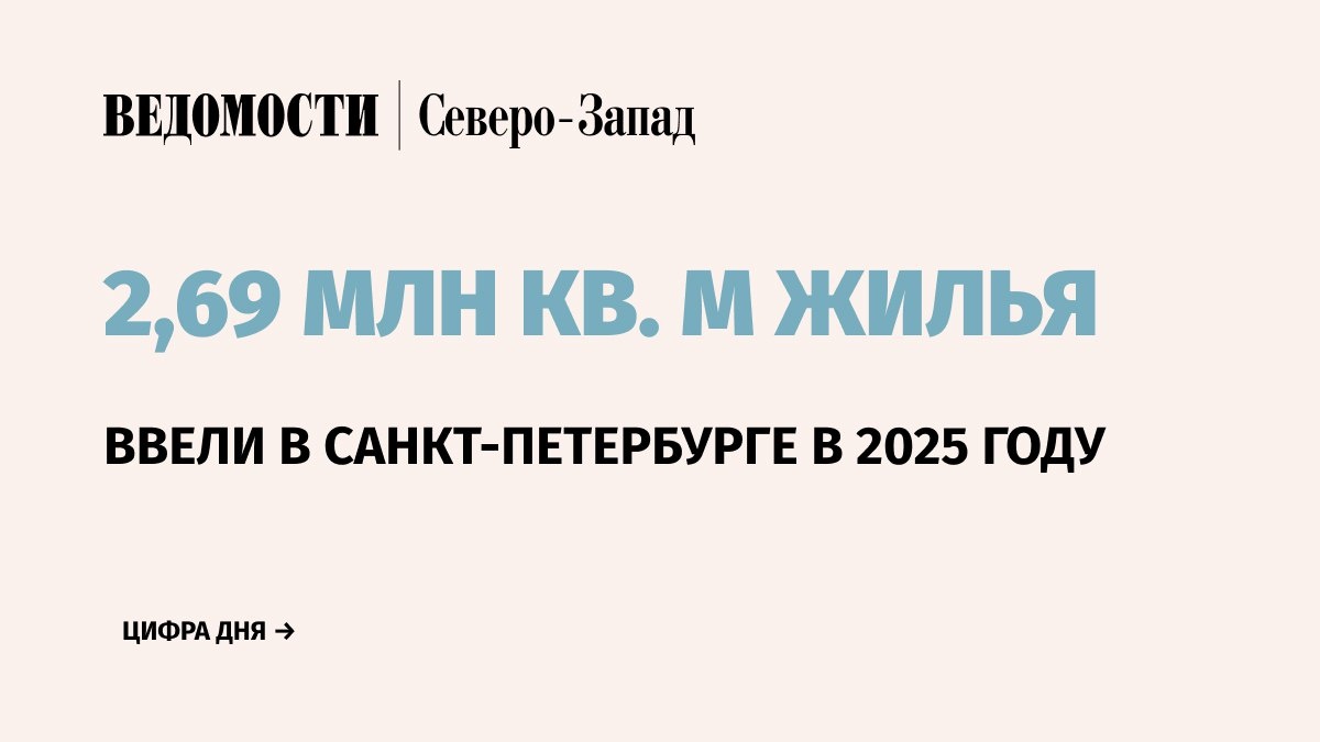 ввели 2,69 млн кв. м нового жилья. Это на 0,8% больше, чем было введено за весь 2024 г. (2,67 млн кв. м), следует из данных комитета по строительству города и Петростата. Напомним, в январе-ноябре отставание относительно аналогичного периода 2024 г. составляло 15%. ▶️В декабре прошлого года в Петербурге ввели 682 700 кв. м нового жилья. Это в 2,3 раза больше, чем за аналогичный период 2024 г. (когда ввод составил 298 704 кв. м). ▶️За прошедший месяц в Северной столице ввели 126 домов на 16 356 квартир, включая объекты индивидуального жилищного строительства (ИЖС). ▶️Также за последний месяц 2025 г. в городе было построено 80 домов ИЖС общей площадью 12 405 кв. м. ➡️Лидером по вводу жилья стал Пушкинский район, где сдано 183 722 кв. м жилья, на втором месте – Красногвардейский район с 111 766 кв. м жилья, третье место занял Курортный район, где введено 44 363 кв. м жилья (10 домов, 795 квартир). 🗞 Telegram | 📰 Max