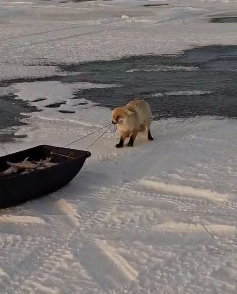 В Казахстанее лиса утащила улов рыбака, чем вызвала удивление и восхищение В Казахстане лиса утащила улов рыбака, чем вызвала удивление и восхищение. Рыбак, выловивший большой улов в одном из водохранилищ, собирался домой. Но внезапно к его саням подошла лиса и начала утаскивать их, схватив веревку зубами. Рыбак был поражен увиденным и не мог поверить своим глазам. Он пытался остановить лису, но та не сдавалась и продолжала тащить сани. Мужчина даже предположил, что лиса не боится его и может быть агрессивной. Лиса тащила полное корыто рыбы несколько метров. Рыбаку все-таки удалось остановить лису и вернуть себе улов. Он был восхищен смелостью и хитростью этого животного.