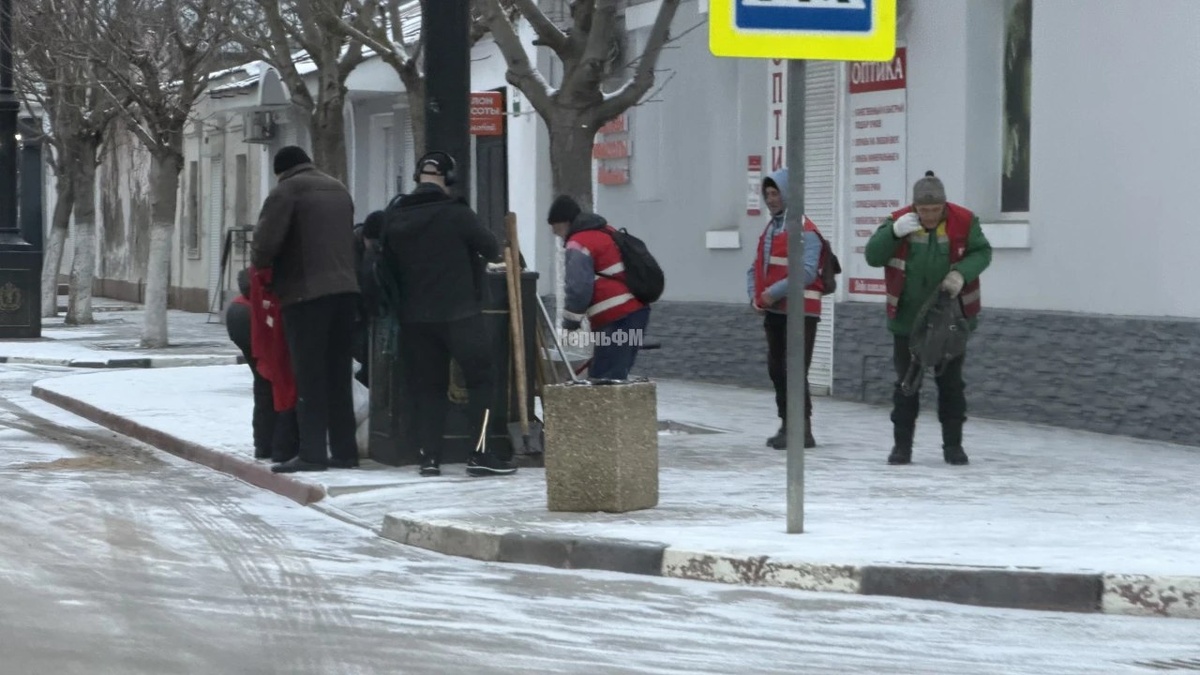 Тротуары в Керчи утром не посыпали, горожане шли по скользким улицам