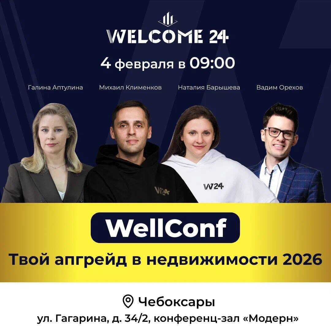 !🔥 👉🏼 Почему мы вообще проводим конференцию? Потому что риелторам сегодня нужны: ✔️ понятные инструменты, а не просто теория ✔️ честный разговор о рынке, а не прогнозы ✔️ опыт коллег, которые работают прямо сейчас ✔️ окружение, которое мотивирует расти, а не выгорать 📍 4 февраля. Чебоксары Локация: конгресс-отель «Россия» Риелторы и агентства соберутся в одном месте, чтобы разобраться в новых правилах рынка и внедрить это в свой бизнес 😎 👉🏼Зачем участвовать именно тебе? — Если чувствуешь, что работаешь много, а зарабатываешь не так, как хочется — Если хочешь понять, как продавать в текущем рынке — Если устал быть один на один со своими вопросами — Если хочешь новые контакты, идеи и ясность, куда двигаться дальше А еще вас ждут призы от спикеров 🎁 WellConf — это точка, после которой начинаются изменения 🔥 Не откладывай регистрацию, билеты быстро заканчиваются👇🏼 https://w24.agency/wellconf