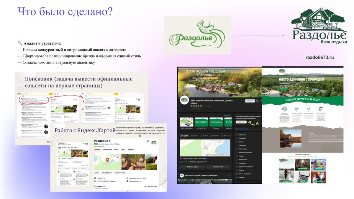 — усилить доверие аудитории и улучшить представление о базе отдыха в онлайне. Решение: