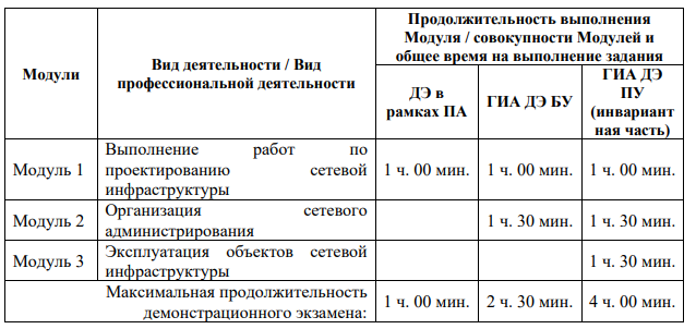 вида аттестации и уровня ДЭ. Продолжительность выполнения каждого