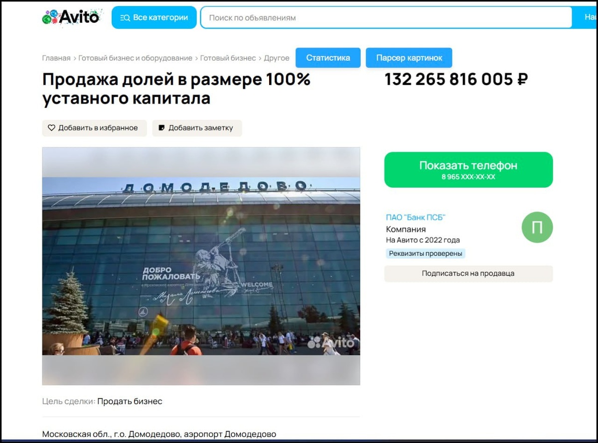 ? 😁 На всякий случай: 132 млрд ₽. Продажа 100% доли бизнеса. Обычное объявление. Обычный Авито. Вопрос не в цене. Вопрос в том, как это упаковано и кому показывается. Авито давно не «доска объявлений». Это рынок. Со всеми вытекающими.