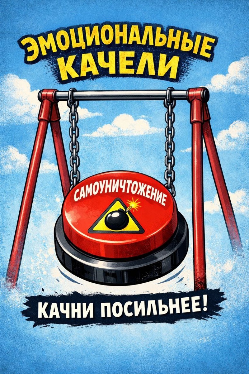 Сначала ты его блокируешь. Потом разблокируешь. Потом опять блокируешь, но только в WhatsApp. Потому что вдруг он напишет в Telegram — там-то ты неожиданно свободна. Потом слёзы, тоска, плейлист «всё было зря», поиск значений снов, в которых он с другой, а ты в гневе жгла его носки. Потом кофе, спортзал, новая помада, возврат к жизни. И через три дня — по новой. Эмоциональные качели — это не про "люблю–не люблю". Это про зависимость от интенсивности. Когда стабильность кажется смертью мозга, а спокойные отношения — "не цепляют". Ты думаешь, это страсть? Нет. Это твоя психика, выросшая в тревоге, зависла на знакомом ритме: сначала боль, потом конфетка. А реальная близость для неё — это скучно и подозрительно. Психологически такие качели — это не романтика. Это сценарий небезопасной привязанности. Ты на крючке: То приближают. То отталкивают. То тянут. То исчезают. И ты качаешься, укачиваешь себя надеждой, что «вот-вот всё устаканится». А пока ты на этом аттракционе — жизнь проходит в