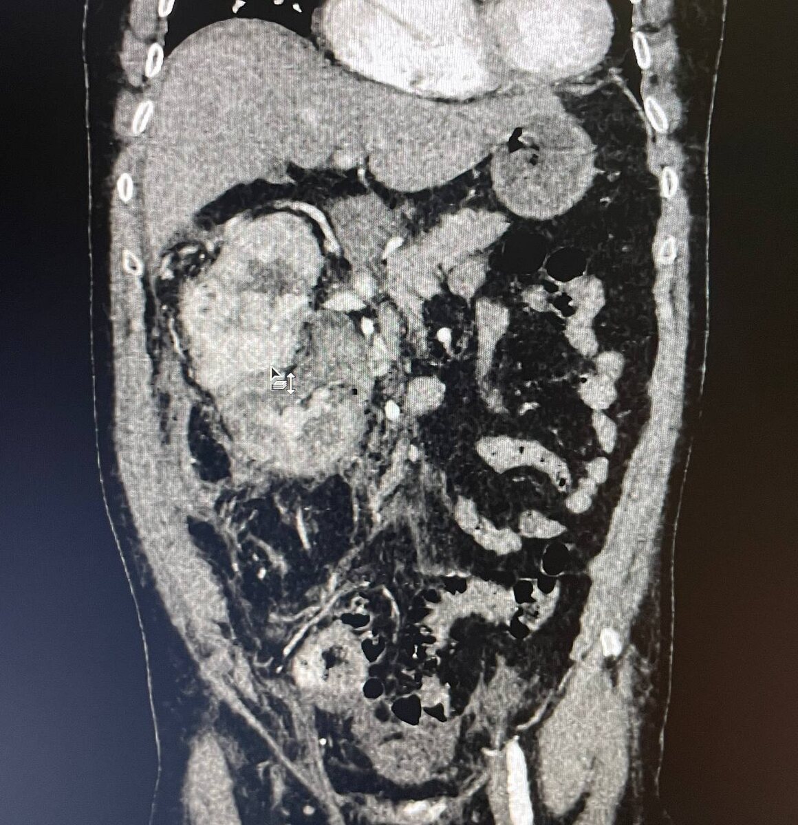 частого в онкологическом стационаре, но редкого в больнице скорой медицинской помощи. К нам на отделение зашли урологи, личное присутствие которых всегда намекает на нечто серьёзное, и попросили в заключении уже описанного исследования добавить классификацию Mayo, так как от этого принципиально зависит тактика лечения пациента с образованием почки. Уверенно сделав вид, что мы поняли о чём речь и сейчас всё допишем, обратились за помощью в интернет, в результате чего классификация была изучена и образованию в почке присвоен уровень II. *Классификацию прикреплю в комментариях. А пока подробнее про исследование. Во II, III сегментах правой почки определяется крупное гиперваскулярное образование единственной правой почки (1 фото, в анамнезе агенезия левой почки), с инвазией в ЧЛС (2 фото), с опухолевым тромбозом почечной вены, с пролапсом опухолевых масс в просвет нижней полой вены (3 фото). Отёк паренхимы правой почки со снижением её выделительной функции. Каликопиелоэктазия с геморраги
