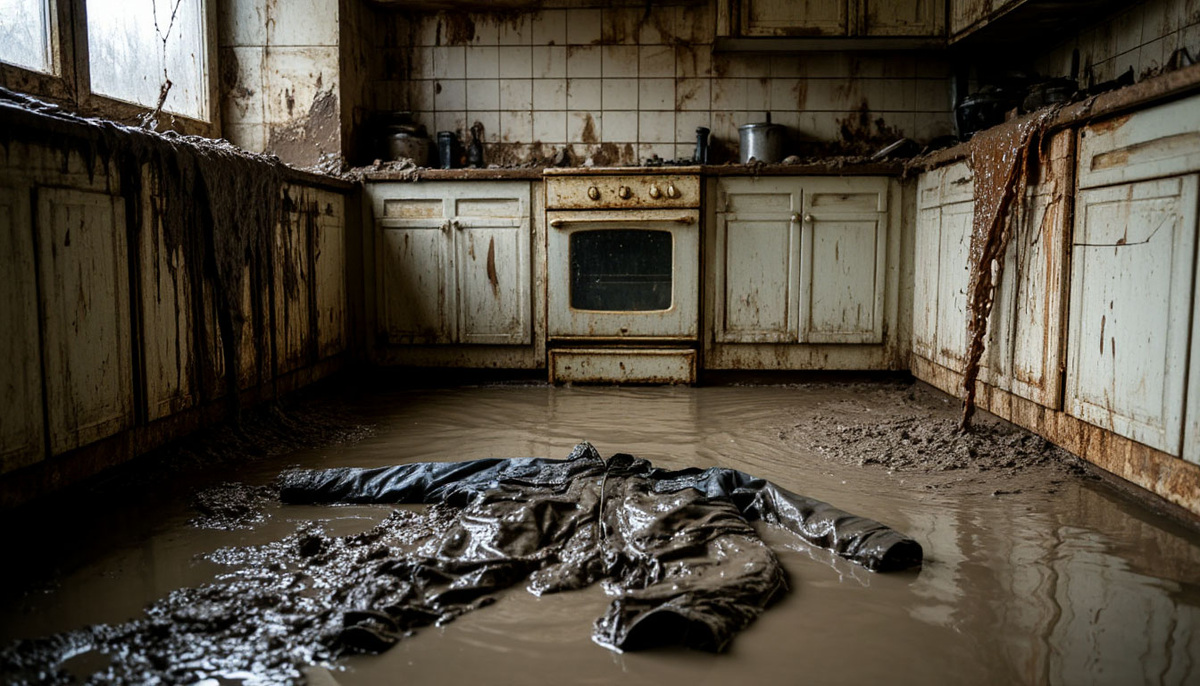 Когда приехали МЧС и перекрыли стояк, в квартире было по щиколотку воды и грязи.