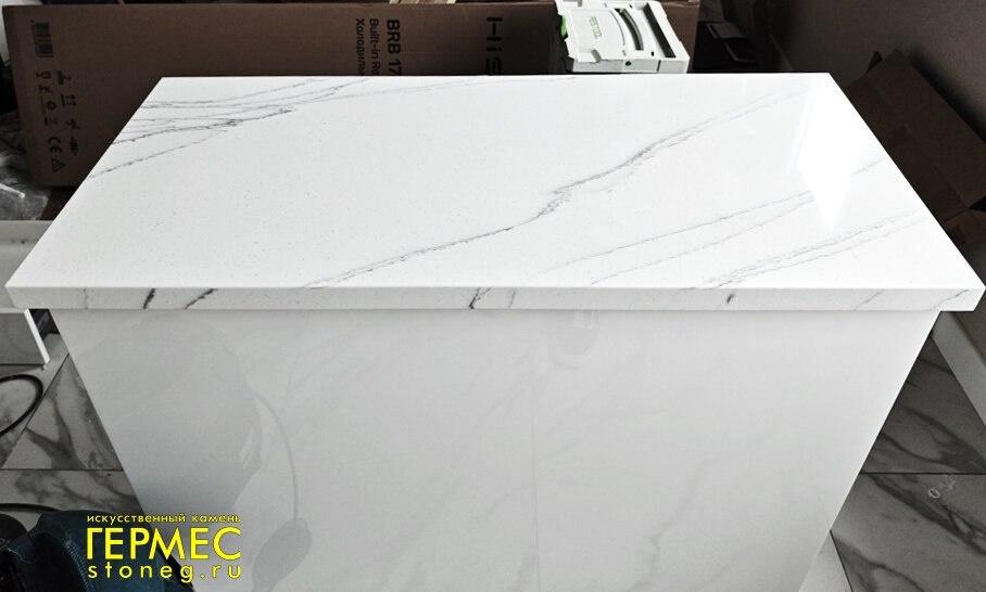 Кухонный остров из искусственного камня Grandex C-801 Arezzo Creavice белого цвета с мраморной текстурой. - Форма столешницы: прямая. - Размеры: 1080х510 мм. - Толщина: 38 мм. - Подгиб: да. - Кромка: радиусная. 👉🏻 Расчёт стоимости проектов и заказ изделий: ☎ 8 (812) 336-34-22, 👉🏻 stoneg.ru/rasschitat-stoimost-proyekta https://dzen.ru/id/5f5b6f7c3d4e5b604091de0c