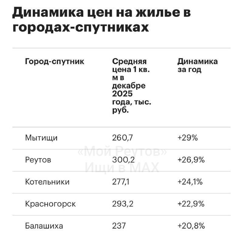 📈 Реутов занял второе место по росту цен на новостройки среди городов-спутников Москвы