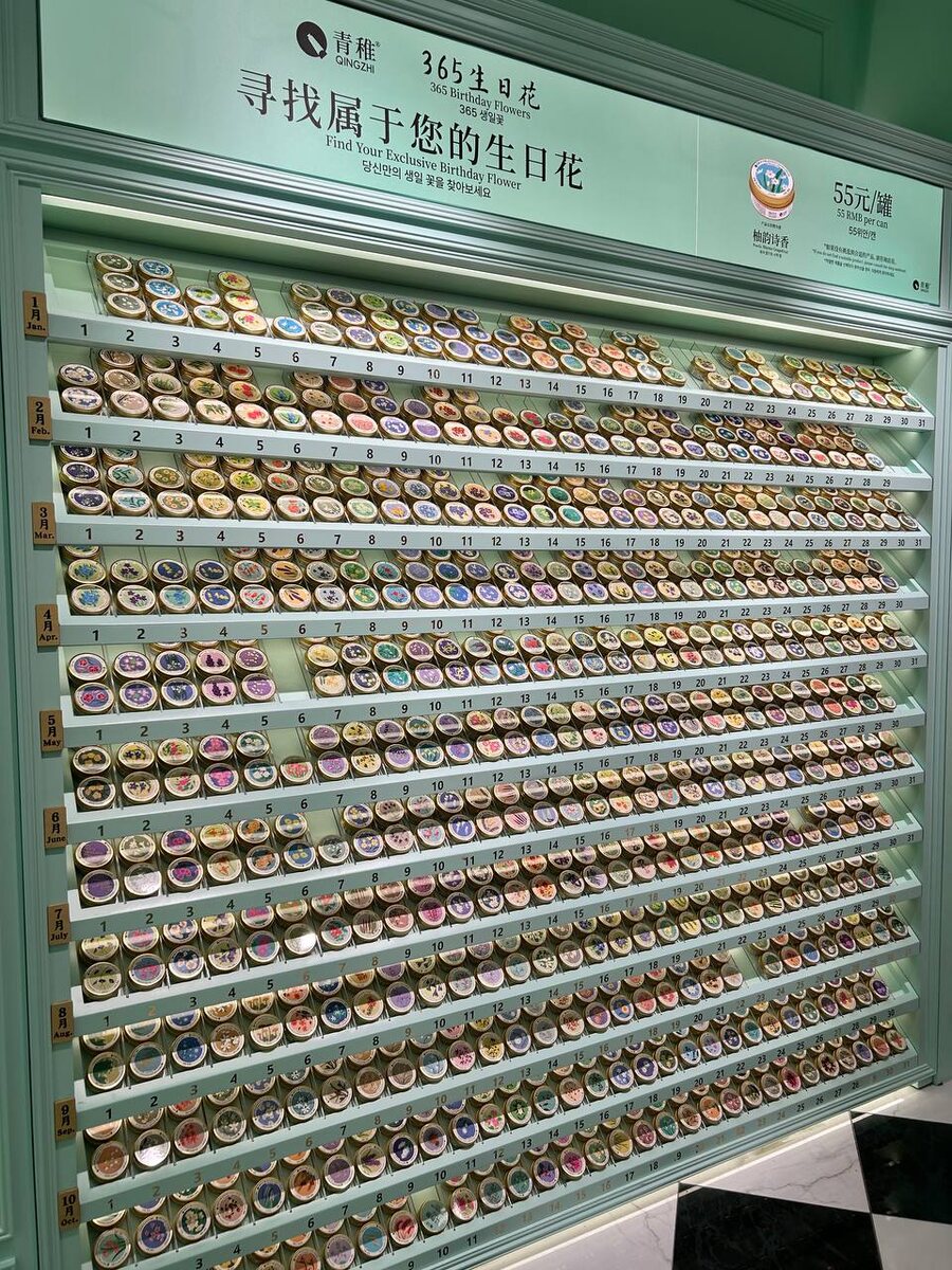 Ловите идею, что привезти из Шанхая в качестве подарка, да и себе на память. Здесь есть интересный магазинчик QINGZHI, вернее даже сеть, где продают исключительно крем. Помимо того, что сам магазинчик стильный и уделяет большое внимание сервису, главная фишка - один из стеллажей, где собраны 365 кремов. Каждый - со своим индивидуальным ароматом под определенную дату. Хотите знать, каким растением пахнет день вашего рождения по версии производителя? Вам сюда. Стоят такие крема по 55 юаней (есть и другие варианты по другим ценам, без дат), по качеству и аромату классные (проверили), а еще их очень круто упаковывают сразу в подарочные коробочки с бантиками и предлагают нанести надпись на выбор на каждую баночку: "С днем рождения" или "Я люблю Шанхай". Так как мы покупали в новогодние, то еще и с "С новым годом" дописали. Пока ожидаете нанесения надписей и упаковки, дают жетоны для автомата, который находится в магазинчике. Здесь вместо игрушек можно вытащить упаковку с подарочком от