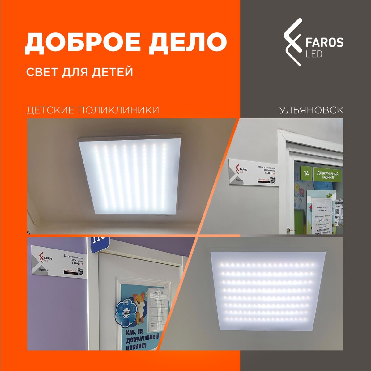 💫 Начинаем 2026 год с добрых дел! 🏥 Компания FAROS LED, по собственной инициативе и в содействии с Министерством здравоохранения Ульяновской области, оказала помощь детским поликлиникам Ульяновска. ✅ В рамках этого доброго проекта специалисты FAROS LED осенью 2025 года провели аудит в ульяновских детских учреждениях здравоохранения, подготовили светотехнические расчёты и определили кабинеты, приоритетно нуждающиеся в качественном обновлении освещения. ⚙️ На заводе FAROS LED были изготовлены светильники специальной серии FS 595 36W 5000K OPAL, которые затем были безвозмездно установлены в кабинетах педиатрии пяти поликлиник. FS 595 обеспечивает яркий, равномерный и безопасный для глаз свет, что особенно важно при осмотре детей, работе с документами и проведении медицинских процедур. Всего в больницы было передано и смонтировано 30 светильников с обеспечением их пятилетней сервисной гарантии. 👉 Благодаря этой доброй инициативе светильниками FAROS LED освещены: - Процедурные кабине