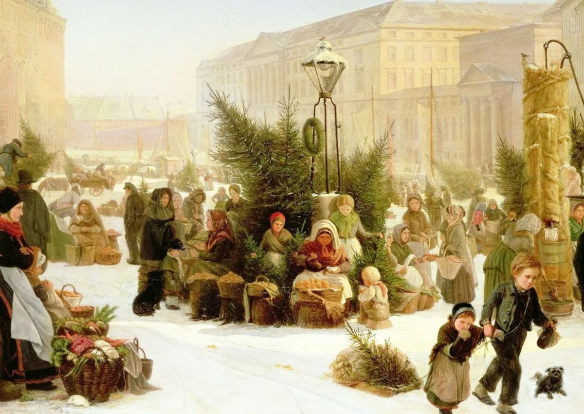 (1)Вечер стоял прекрасный. (2)Небо тёмно-синее, чистое, всё звёздочками усеяно, а звёздочки так и мигают в безбрежной высоте, точно улыбаются оттуда. (3)Снег, как белой скатертью, обтянул все улицы. (4)Идёшь — под ногами хрустит. (5)И что-то праздничное, бодрящее разлито в воздухе, будто не только люди, но и вся природа напряжённо и нетерпеливо ждёт Рождества. (6)Улицы против обыкновения людны, во всём городе оживлённо, потому что открылась ярмарка и уже началась продажа ёлок, разных украшений и игрушек. (7)Нам было весело; шутя и болтая, бежали мы по улице.