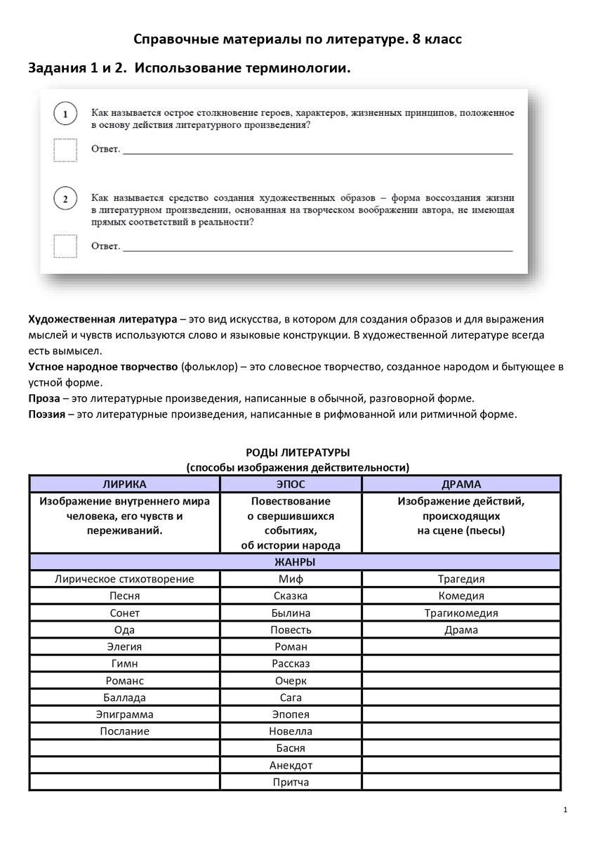 ВПР. ЛИТЕРАТУРА 8 КЛАСС. МАТЕРИАЛЫ ДЛЯ ПОДГОТОВКИ (ШПАРГАЛКА)