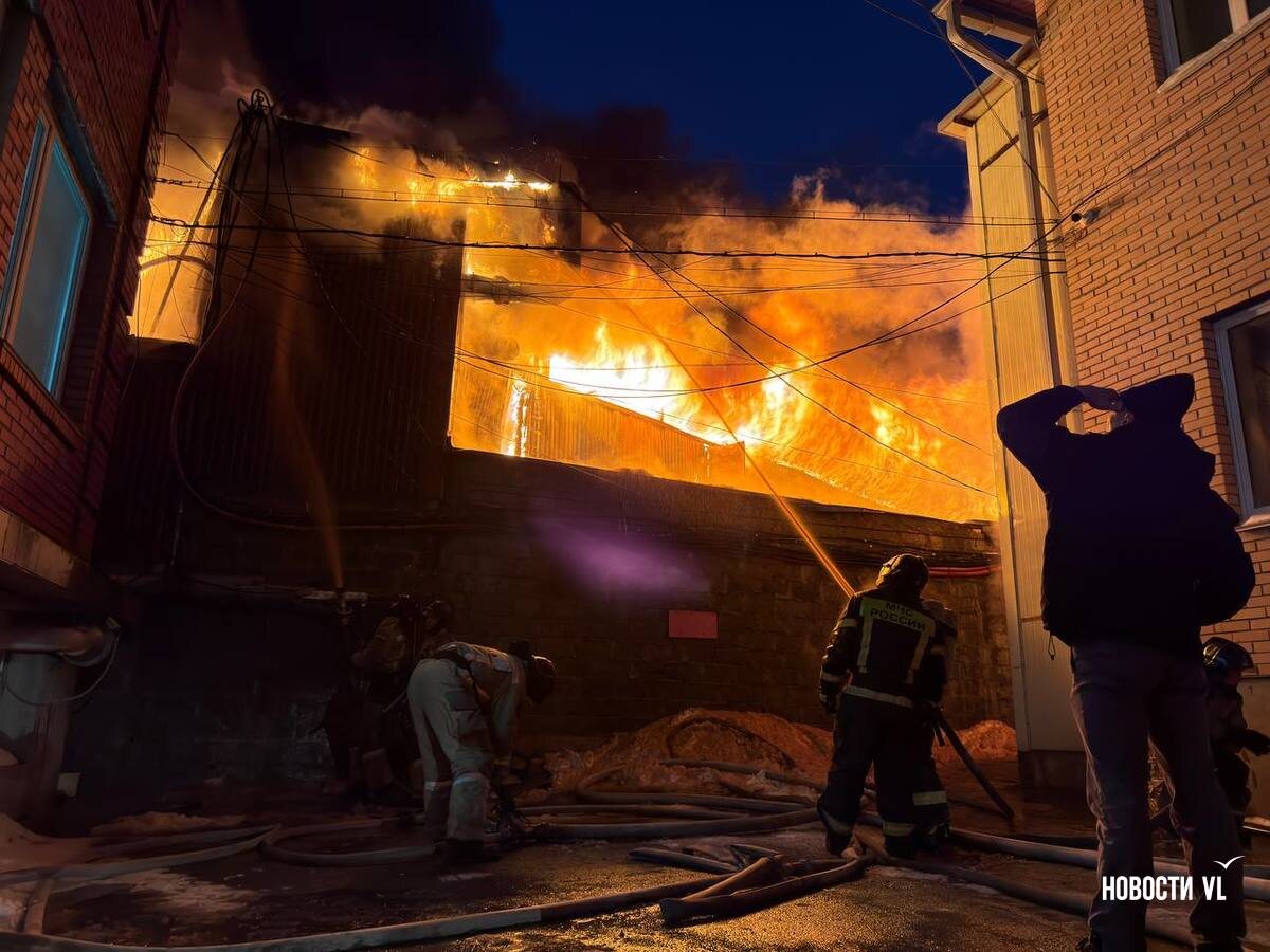 С начала пожара прошел час, огонь уничтожил верхний этаж складов. По оперативным данным, на момент прибытия пожарных горела крыша склада на 280 квадратах, шел густой черный дым. Коллеги из @newsvlru сообщают, что сначала на тушение прибыла одна машина, но пожарные не сразу смогли приступить к работе. Также потребовалось время, чтобы перекрыть движение и обесточить здания. Для эффективной работы выбили окна и открыли все двери. В настоящее время пожар тушат по 2-му рангу. Всего задействовано 9 единиц техники и 39 человек личного состава. Информация уточняется, новость дополняется. Сообщений о пострадавших на момент публикации материала нет. Фото и видео: @newsvlru 🟥Подписаться в Telegram | Предложить новость ➡️Подписаться в MAX