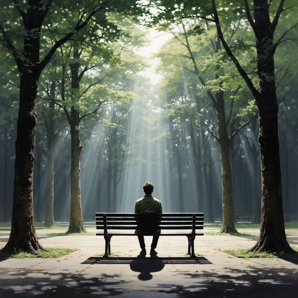 Я сижу на скамейке в парке, где деревья выглядят так, будто их нарисовали на заднике театральной сцены. Листья — слишком зелёные, тени — слишком резкие. Всё вокруг словно бы подмигивает мне: «Смотри, мы ненастоящие. Но и ты тоже».