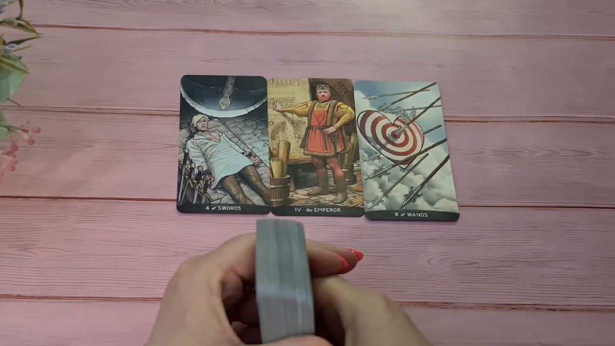 И всё же — любовь у него есть. Королева Жезлов, которую он хочет увидеть в вас, — это образ страсти, яркости, открытости, сексуальной энергии, живой, горячей женщины, которая умеет быть желанной и желать сама. Он мечтает о вас в розовых очках, фантазирует, строит планы, но внезапно сталкивается с пятеркой Мечей — картой предательства, обмана, потери. Возможно, он сам где-то сглупил, поступил опрометчиво, поддался эмоциям, свернул не туда, был рядом с другой, и теперь это аукнулось. Он чувствует, что его оболгали, или вы что-то придумали, или он сам натворил глупостей, и теперь стоит перед выбором, который зависит не от него.