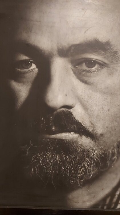 Среди старых портретов, внизу на стене справа - портрет Ленина. У Параджанова спрашивали: "Как Вы относитесь к Ленину?" Он отвечал: "Очень хорошо. Я бы с ним подружился. Подарки бы ему дарил".