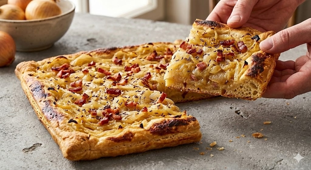 Этот пирог — настоящая находка для уютного зимнего ужина. Привет, друзья! Сегодня делюсь рецептом, который буквально покорил мою семью. Если вы думаете, что луковый пирог — это что-то обыденное, то этот рецепт заставит вас изменить мнение навсегда. Лук здесь превращается в нежнейшую, сладковатую начинку, а бекон и тмин добавляют потрясающий «дымный» аромат. Главное — вовремя остановиться и не съесть половину пирога в одиночку! 😉 👩🍳 Как готовить: В теплой воде растворяем дрожжи и соль. Вливаем растительное масло и постепенно вводим муку. Замешиваем мягкое, эластичное тесто. Как только оно перестает липнуть к рукам — готово! Убираем в теплое место на 1 час, чтобы оно выросло в два раза. На смеси растительного и сливочного масел обжариваем нарезанный бекон до золотистости. А теперь самое интересное: добавляем целый килограмм лука! Не пугайтесь объема, при тушении он сильно уменьшится и станет невероятно нежным. Готовим под крышкой на среднем огне 15-20 минут. В конце добавляем тмин.