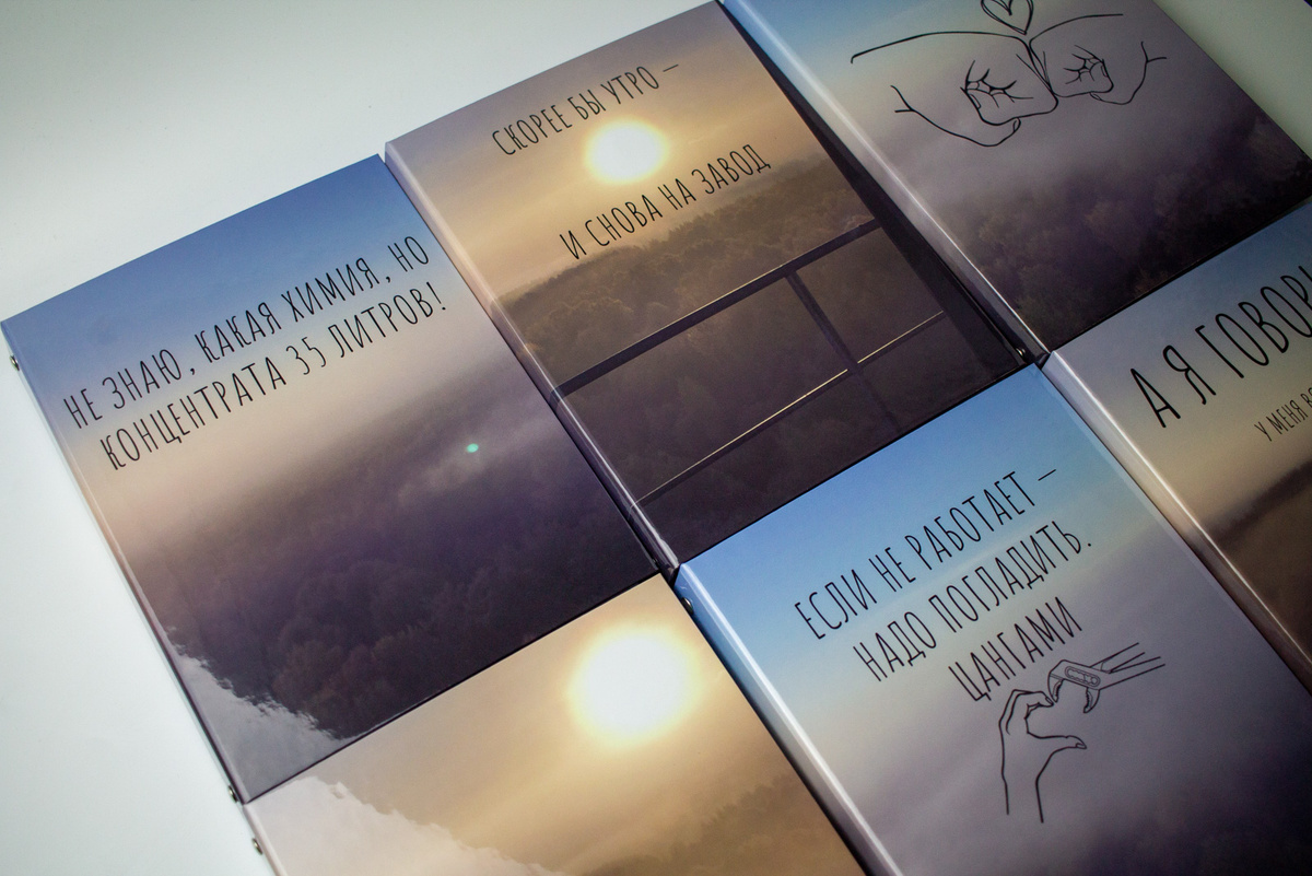 Наши блокноты для EGGER - это шесть блокнотов с индустриальным юмором: Фоновые пейзажи (туманные леса, рассветы за окном цеха) и лаконичные иллюстрации сделали эти блокноты индивидуальными. 2. Удобный функционал Когда сотрудник берёт в руки такой блокнот, он чувствует: его профессия, его юмор и его ежедневные победы важны. Это не просто блокнот с логотипом - это инструмент, который: