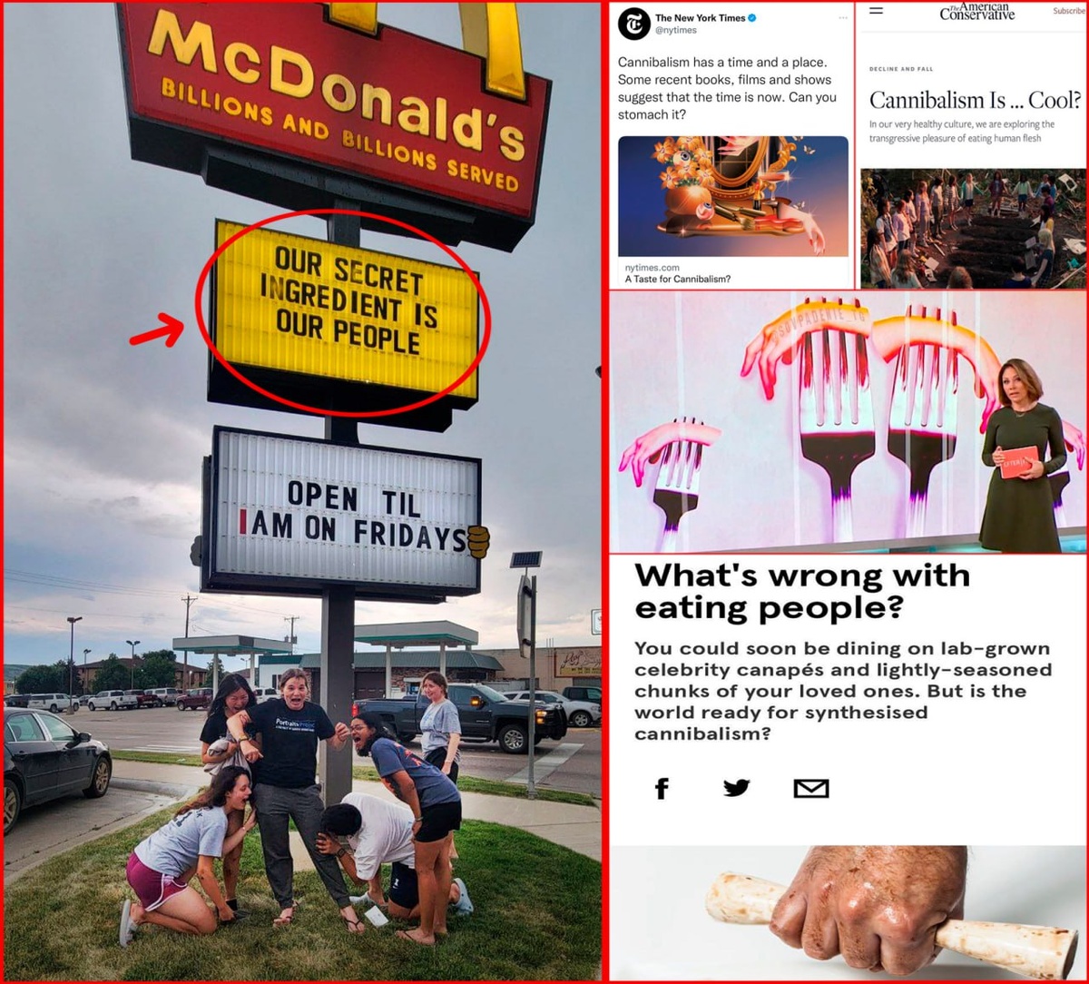 «Наш секретный ингредиент - это наши люди» — реклама McDonalds На фоне жутких статей от популярных СМИ о том, что каннибализм, оказывается, это «хорошо» (прямая цитата издания American Conservative), реклама звучит жутковато и мысли совсем не о том, что, возможно, подразумевала команда... Или так и планировалось? Уже сложно утверждать наверняка. Подпишись на Телеграм Александр Семченко