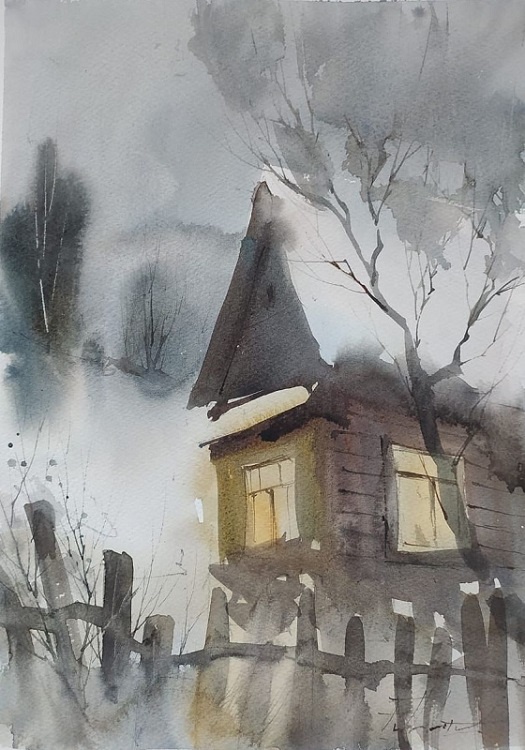 На занятии особое внимание будет уделено планированию сцены зимнего пейзажа. В процессе работы участники освоят основные приёмы, которые помогут изобразить домик, снег, деревья. С помощью техники «по–сырому» участники научатся создавать ощущение холода и метели. 23 января (пятница) 2026 г. в 15:00 в Детской художественной галерее РОМИИ состоится занятие «Зимний дворик» из цикла «Акварельные пятницы». Мастер–класс для детей старше 15 лет и взрослых. Занятие проведет художник–акварелист Макагонов Роман Борисович.