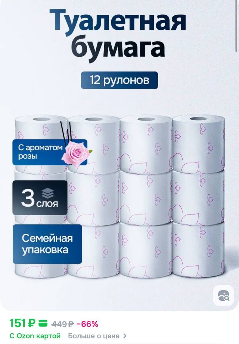 😃😲😃Туалетная Бумага ROSE 12 рулонов 3 слоя с ароматом Розы