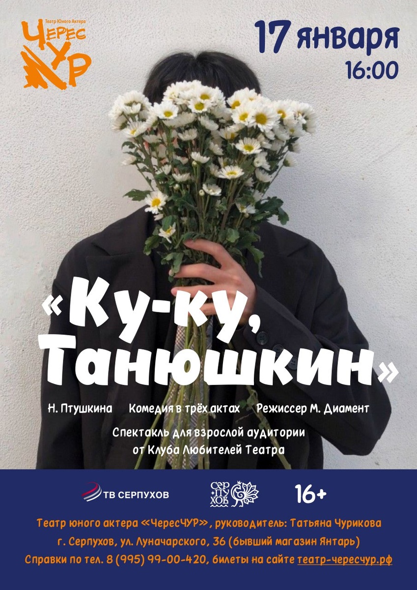 ✨ КУ-КУ, ТАНЮШКИН 🎄 🤔Как влюбить в себя мужчину с помощью тарелки овсянки? 🤔Как на Канарах вырастить укроп и редиску? 🤔Как стать самой счастливой женщиной в мире? На эти, и другие вопросы, вы сможете найти ответ, посмотрев наш спектакль, пропитанный новогодним чудом, добротой и любовью❄️ ☎️ +7 995 99-00-420 🌐 театр-чересчур.рф 🚫 Возраст: 16+ 📆 17.01.2026 🕒 16:00 🏢 Театр Юного Актёра "ЧересЧУР" 📍 г. Серпухов, ул. Луначарского, д.36 💰 Цена от: 600 до 700 ₽ 🎫 Купить билет: https://quicktickets.ru/serpuhov-teatr-chereschur #спектакльСерпухов #нгсерпухов #театрсерпухов ⭐Поддержать канал голосом 💰 Канал Вакансии Серпухова ✅ Мероприятия Серпухов https://dzen.ru/id/66f01c6eb4c6fe60c9ca1608 http://vk.com/serpukhov_events http://dzen.ru/serpukhov_events
