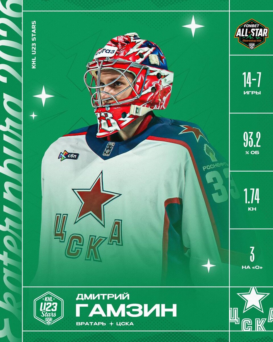 ! 7 и 8 февраля в Екатеринбурге голкипер ЦСКА присоединится к команде молодых звёзд KHL U23 Stars. ⭐️ Билеты на #KHLAllStar