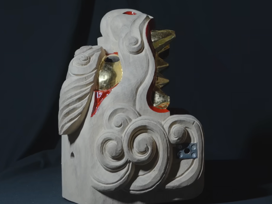 То, что видит зритель в танце льва — хаотичный ритм движений, щелчки пасти, почти звериная ярость — на самом деле лишь вспышка. Под ней — ремесло, которому чужда суета. Спокойная, точная, замедленная работа. Она начинается задолго до первого удара барабана, с куска дерева и тишины. Выбирается хиноки — японский кипарис. Его древесина тёплая, лёгкая, с запахом храмов и дождя. Мастер берёт заготовку, слушает, как будто прислушивается к камертону. Звук важен: если дерево не отвечает — оно не живо, оно не готово. Его откладывают, без спора. Первая резьба — грубая, будто с закрытыми глазами. Из куска выбивается форма. Не лицо. Не образ. Только вес, пропорции, контур черепа. В этот момент голова напоминает нечто доисторическое, как будто выточенное по памяти о звере, которого никто не видел. Затем — тишина. И начинается главная работа. Скулы. Зубы. Переносица. Но самое главное — взгляд. Он должен отгонять зло. Не быть добрым, не быть человечным. Если выражение выходит мягким — всё насмарку. М