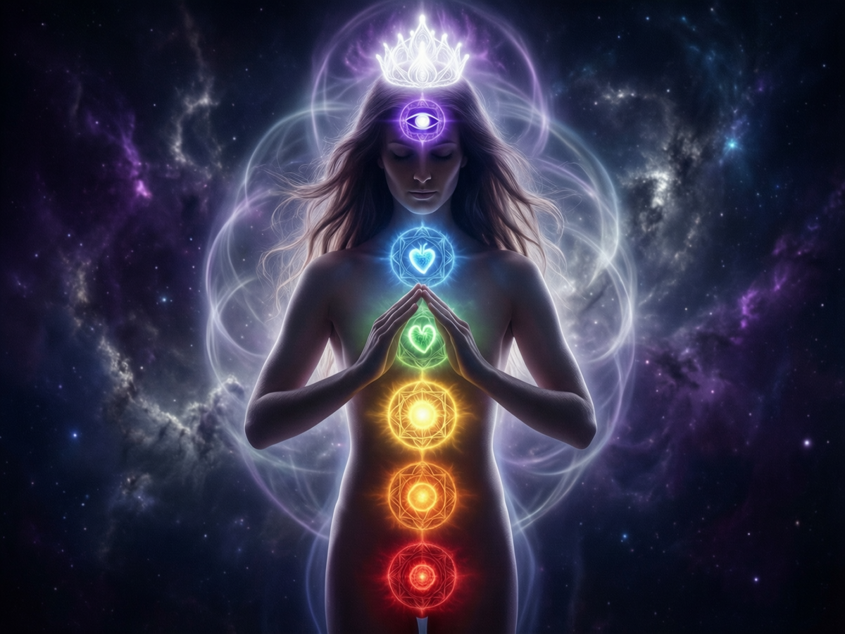 Начнём с базовой энергетической анатомии. У вас семь основных чакр — от корневой (в области копчика) до коронной (на макушке). Каждая отвечает за определённую сферу жизни и связана с конкретными органами и психоэмоциональными функциями.