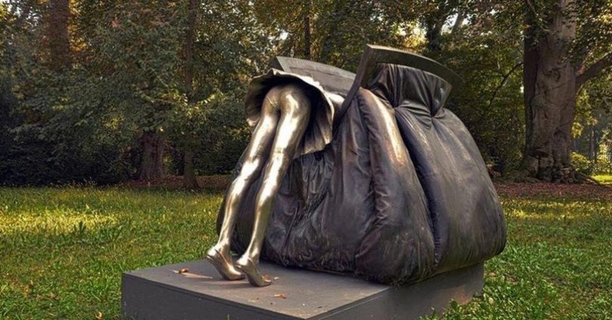 Странный, ироничный и неожиданно трогательный объект. Скульптура впервые была показана на выставке с философским названием о диалоге природы и воображения. Обычная сумка вдруг превращается в символ повседневной жизни и женской силы.