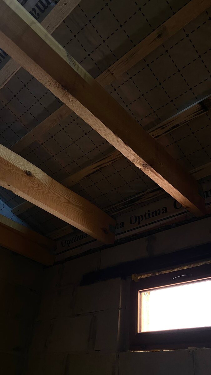 Надо закрепить все слои утеплителя, проверить и заклеить все стыки, чтобы крыша была теплой и не было никах теплопотерь, ведь здесь будет расположена парная и моечное помещение!