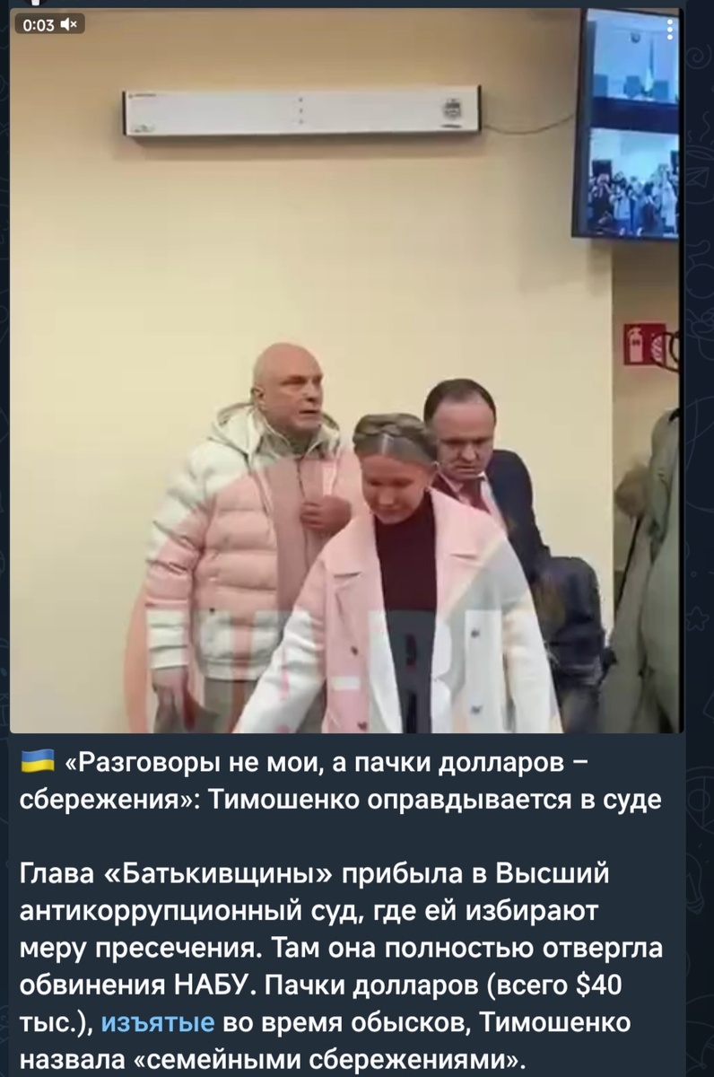 Юля будет изображать из себя старую женщину (ей типа 65 лет, выглядит хорошо). Которую пустили по беспределу агенты НАБУ. Да в принципе так и есть. Что там могут ей пришить? Записанный диалог мужчины и шепот женского голоса? 40 тысяч долларов из странного пакета? Ну это смешно.