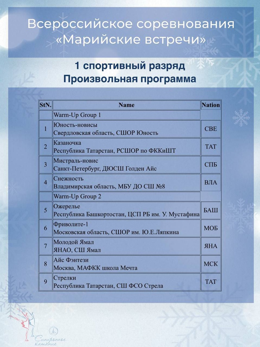 » 16 января 2026 года 1 спортивный разряд Произвольная программа 15:40 Онлайн-табло соревнований Онлайн-трансляция соревнований Будет прикреплена позже #ффккр #синхронноекатание #вс_марийские_встречи