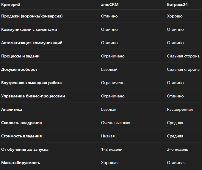 ✅ amoCRM лучше подходит для: