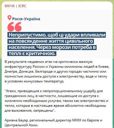 Так, Красный Крест заявил, что удары по энергетике Украины равносильны атакам по территории России. 🤡 Глава МИД Украины Сибига назвал заявление "позорным". P.S. Так и "режет" глаза, да, хохлы? (не путать с украинцами) @iperiodu| @iperiodu_ru x @iperiodu_ua| Подписывайтесь