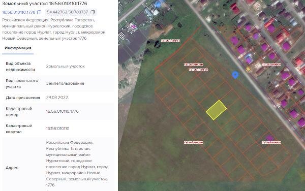 Название: Земельный участок из земель населенных пунктов с кадастровым номером 16:56:010110:1776 площадью 1000 кв.м., расположенного по