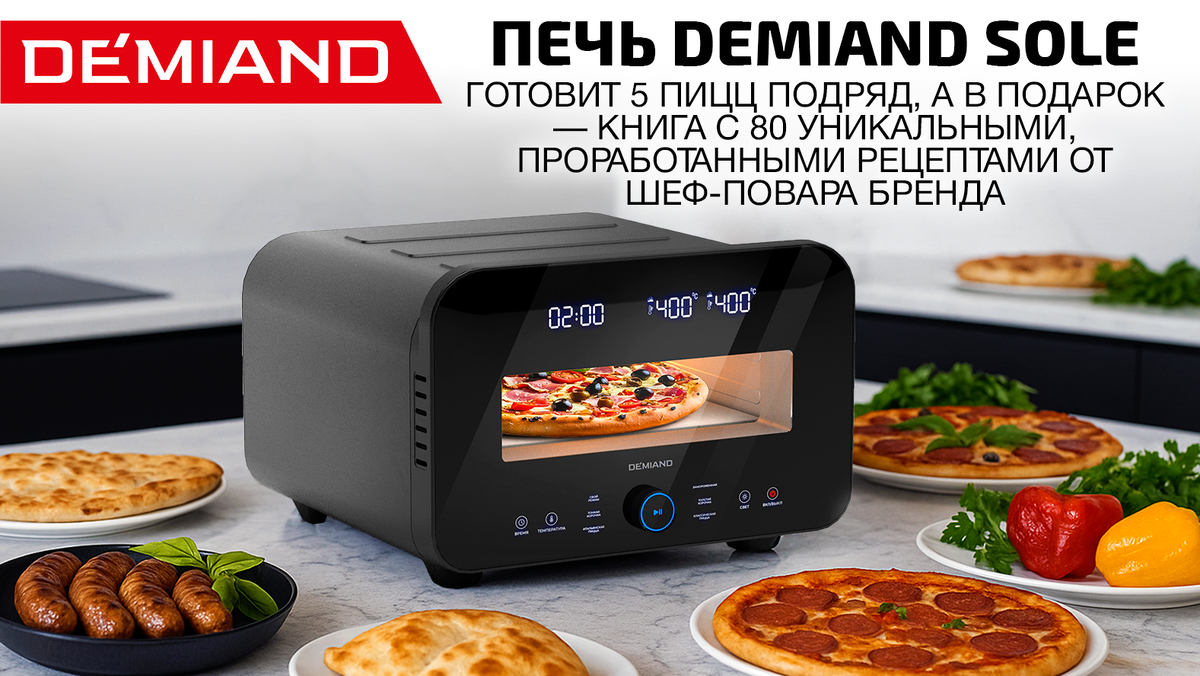 В комплекте — натуральный подовый камень 32×32 см, который создаёт тот самый эффект настоящей печи, а также аксессуары для комфортной работы с пиццей. Demiand Sole предлагает: Это техника, которая не т