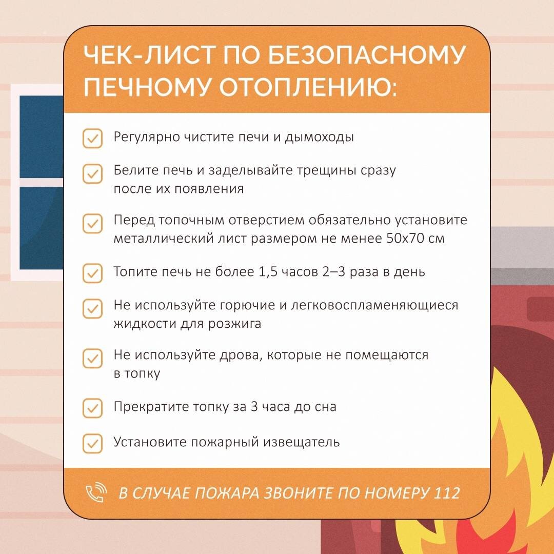 ☝🏻 Одной из основных причин возгораний является неправильное обращение с печным отоплением. 📋 Мы подготовили чек-лист по безопасной эксплуатации печи. ✅ Пройдитесь по пунктам и убедитесь, что соблюдаете все меры предосторожности. #МЧС66 #Свердловская_область #Пожарный_надзор #Профилактика