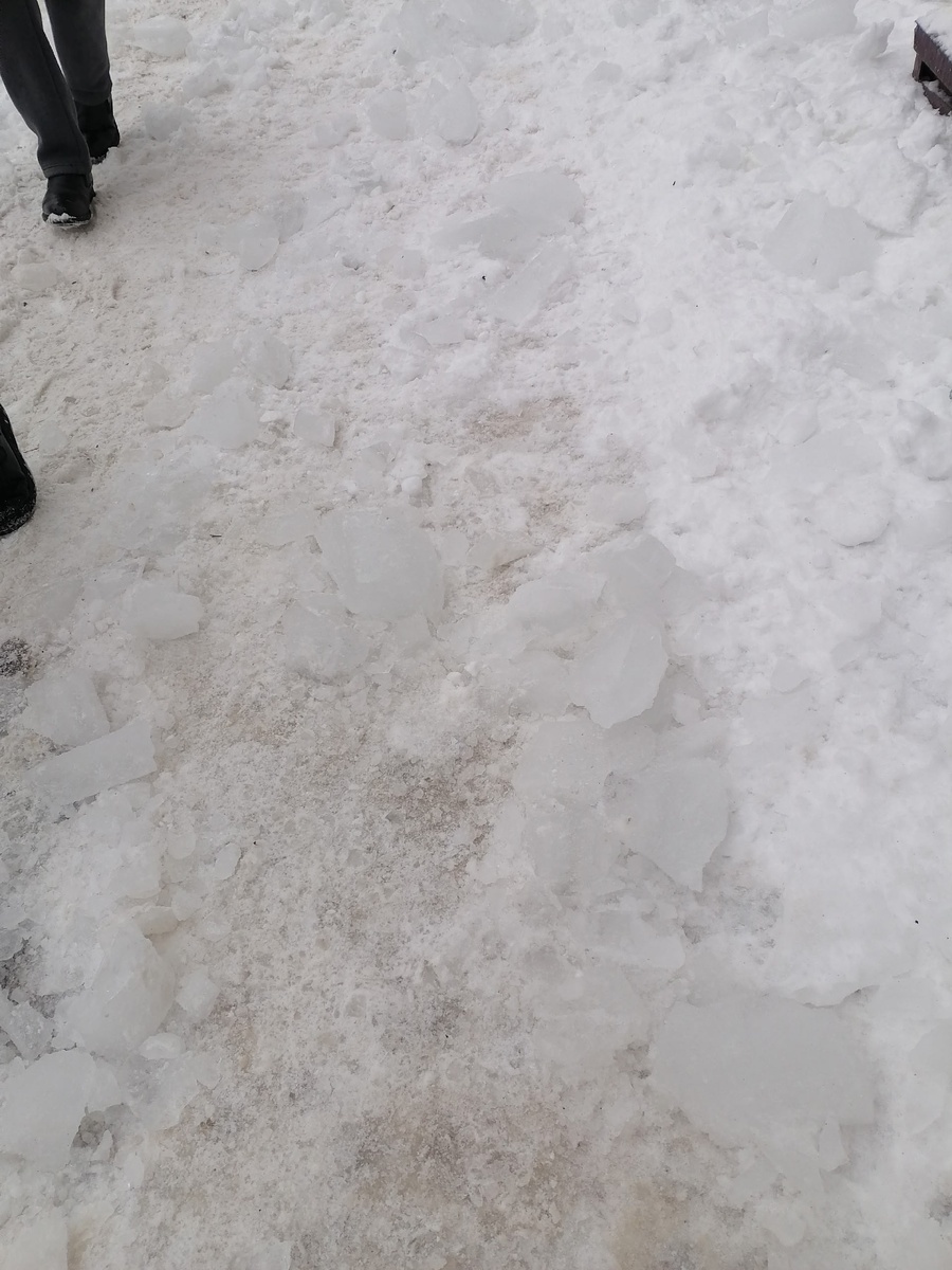 #ЗлойЧереповчанин😡 "Тротуар вдоль дома на Металлургов, 14 (у Руси), сегодня весь закидан ледяными булыжниками, и убирать их, похоже, никто