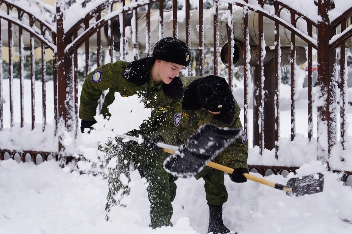 ❗️ Кадеты Крымского казачьего кадетского корпуса уже третий день подряд выходят на «снежную вахту» — дружно расчищают тротуары