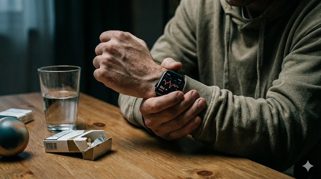 Тело не понимает, что делать дальше. Нервная система ждёт сигнал, а сигнала нет. Появляется лёгкое головокружение. Не резкое, а как будто мир стал на пару процентов менее устойчивым. Пульс начинает напоминать о себе — не болью, а вниманием. Любой звук кажется громче обычного. Свет — резче. Мысли — короче.