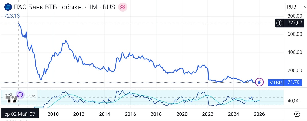 Стоит ли брать? Вернёмся на 19 лет в прошлое. 🔵Первичное публичное размещение (IPO) В мае 2007 года цена размещения была установлена по верхней границе объявленного ценового диапазона, что уже тогда вызывало споры среди аналитиков относительно справедливости оценки. Цена за 1 акцию — 13,6 копеек (0,136₽) = 680₽, если смотреть по нынешним ценам, из-за обратного сплита в 2024 году. 🔵Глобальный финансовый кризис 2008 года нанес сокрушительный удар по банковскому сектору. Резкий рост просроченной задолженности и переоценка валютных активов потребовали экстренной помощи. Государство, как основной акционер, приняло решение о докапитализации. Цена размещения: 4,82 копейки за акцию. Цена размещения оказалась в 2,8 раза ниже цены IPO 2007 года Было размещено 9 трлн акций. Для сравнения: на IPO было размещено 1,5 трлн акций. То есть объем эмиссии 2009 года в 6 раз превысил объем IPO. Миноритарии, не имевшие свободных средств для участия в эмиссии на дне кризиса, увидели колоссальное ра