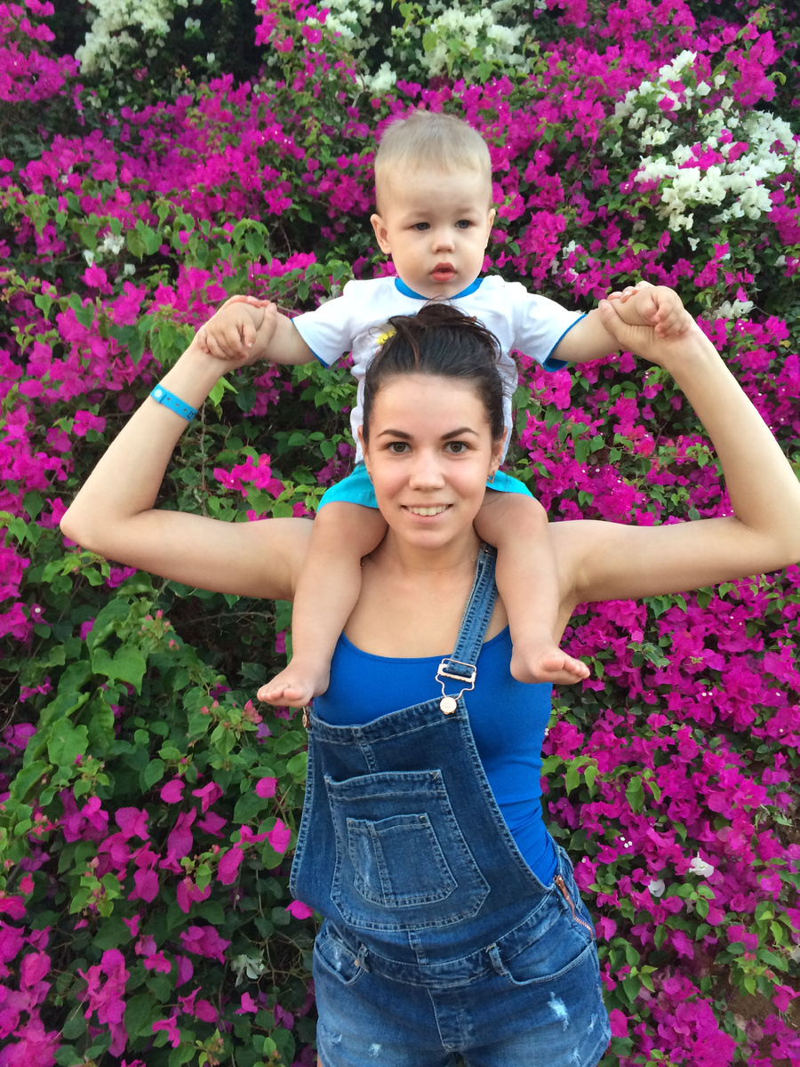 У нас был годовалый сын, и, как оказалось позже, я уже была беременна вторым. Будучи беременной успела выиграть местный конкурс красоты)