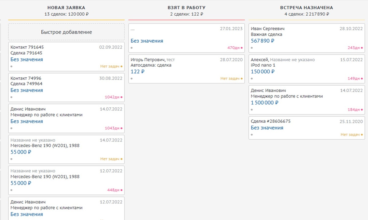 Нужно открыть воронку продаж, и визуально определить насколько долго сделки находятся на каком либо из этапов Что это может означать: 2. Сделки без задач Что ищем: Сделки, на активных этапах воронки, у которых в данный момент нет ни одной активной задачи. Как проверить в amoCRM: